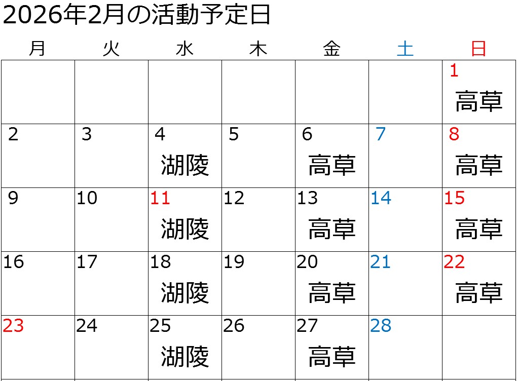 2月の活動スケジュールです🏸 天候等でスケジュールが急遽変更になる場合がありますので、必ず参加前に 2月の活動スケジュールです🏸